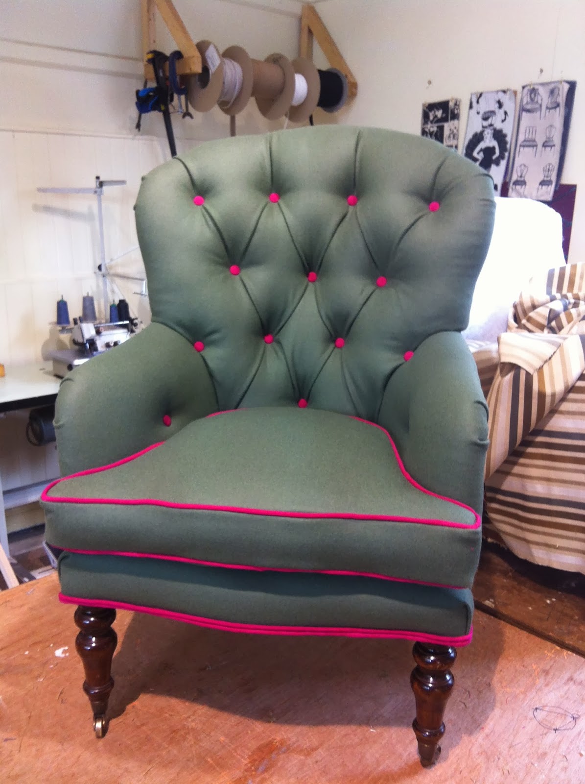 After returning from her time abroad Emily retrained in upholstery after inheriting some furniture from an elderly uncle who was an avid antique furniture collector. Emily says: